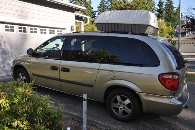 2) We have now added a car carrier to the top of the minivan so that we have enough carrying space for a playpen, stroller, suitcases, etc.